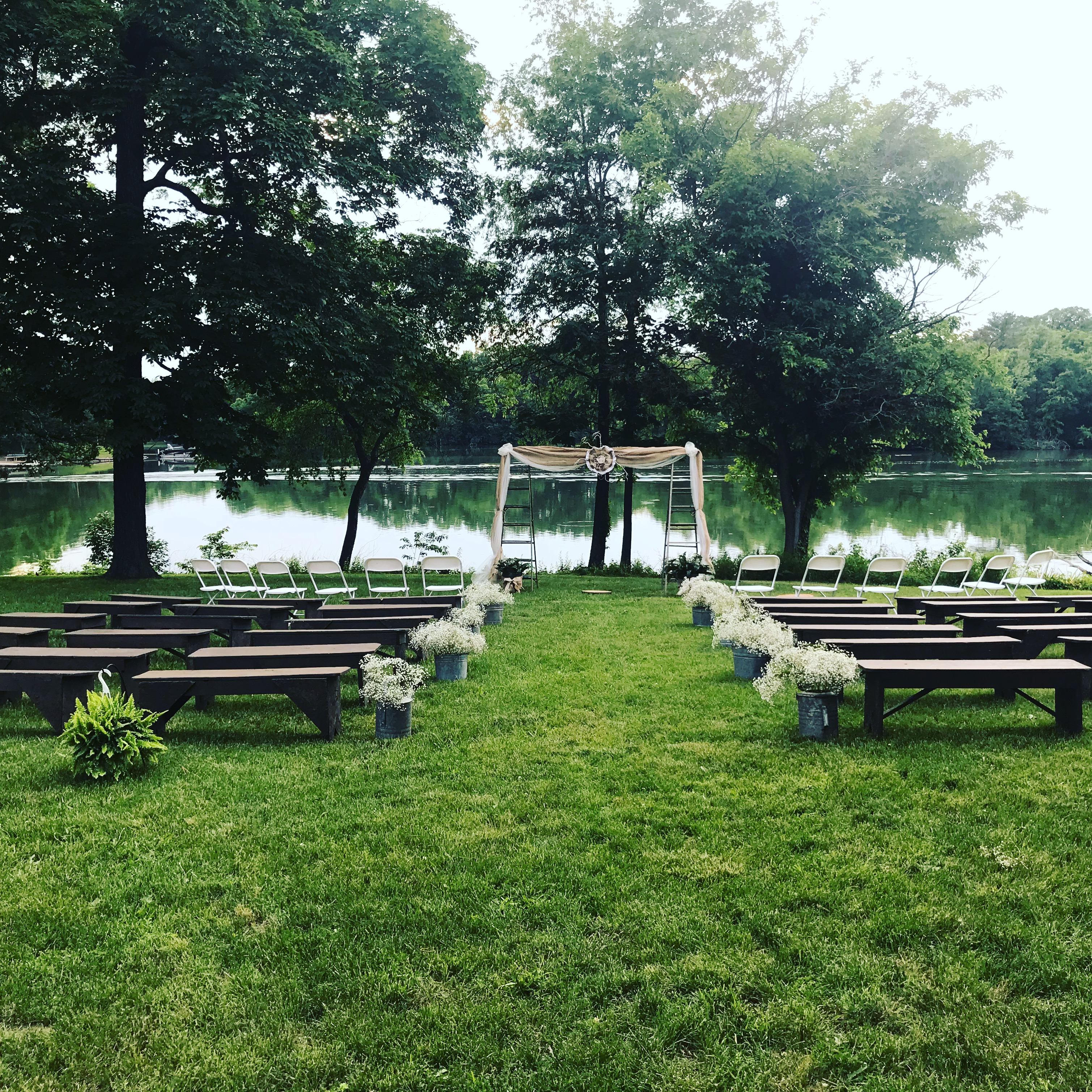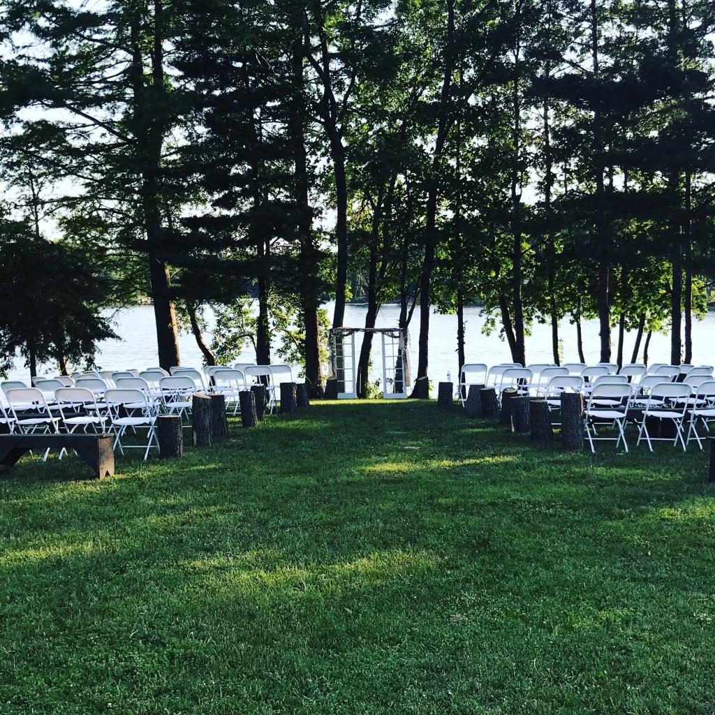 There are several beautiful areas on the ground to have your wedding ceremony with the backdrop of the lake!